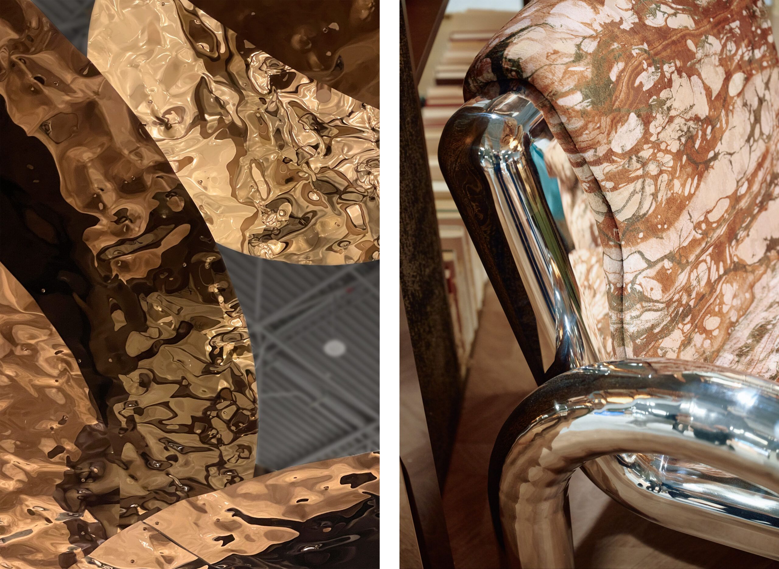 The design embraced a modern interpretation of traditional elements, directly referencing the ancient practice of alchemy – the transformation of base materials into precious metals. This concept was expressed through mixed metals, modern takes on traditional patterning and a rich, sophisticated color palette. Serving as a clear north star throughout the process, the concept guided every design decision to ensure consistency and impactful design.